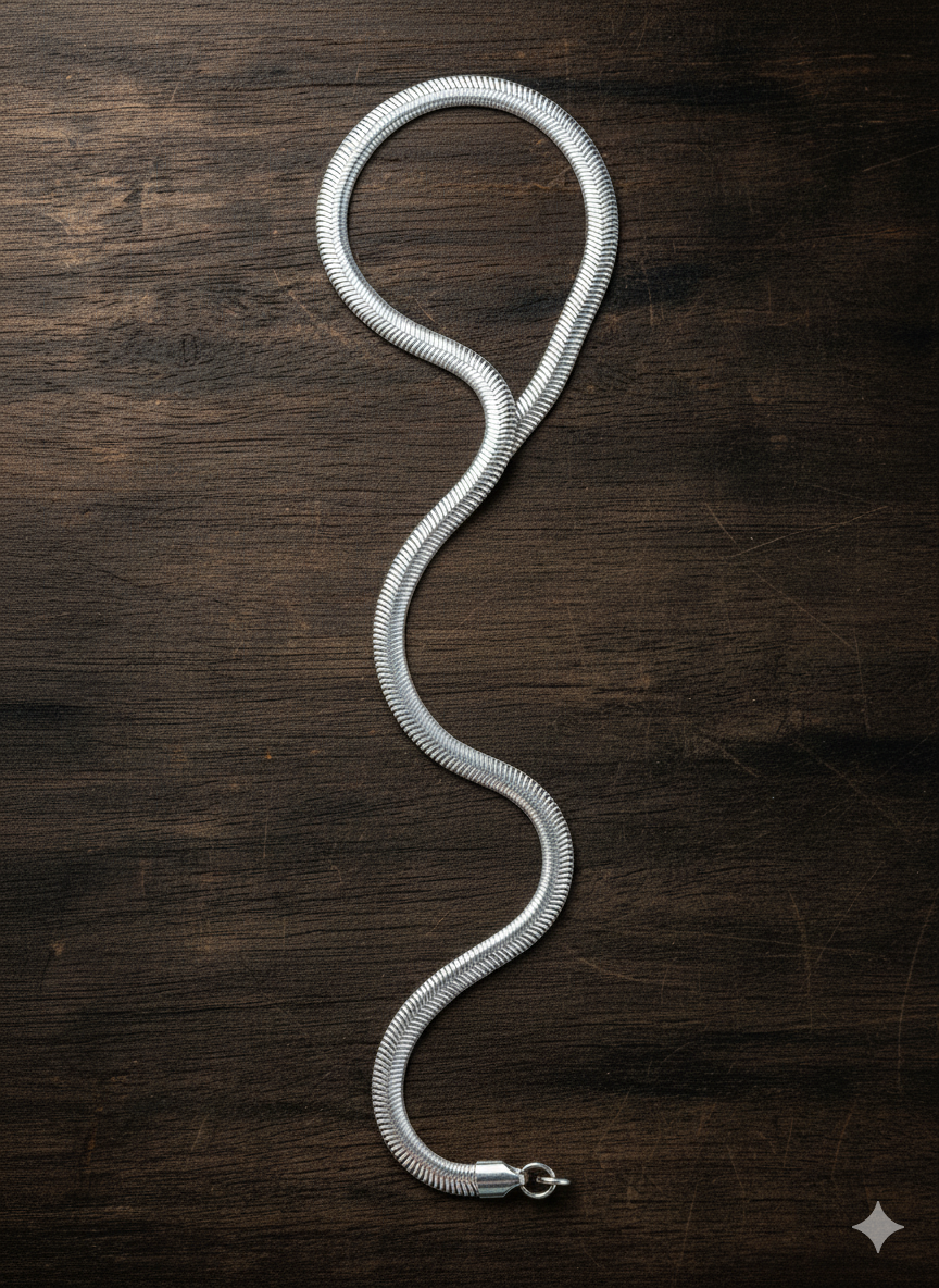 La Cadena Panza de Víbora es pura energía rockera. Su diseño inspirado en la textura de la serpiente evoca movimiento, fuerza y un magnetismo salvaje. Es el accesorio de quienes viven con autenticidad y estilo vibrante, como el sonido del blues mezclado con la rebeldía del rockabilly. Un homenaje a las noches de música, luces tenues y almas libres que no temen destacar. Una cadena atrevida y poderosa que, como la serpiente, deslumbra y fascina en cada aparición.
